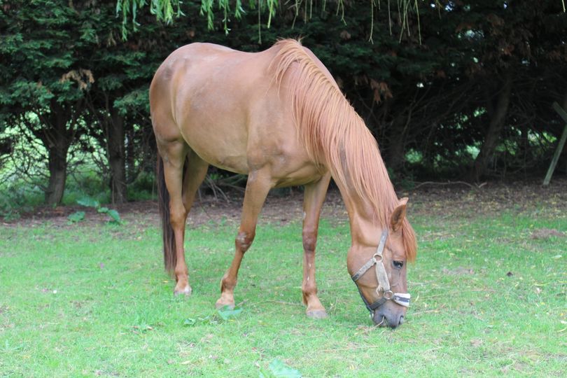 Après une première vie de jument de course, elle cherche une famille pour brouter et faire des balades a plusieurs chevaux .